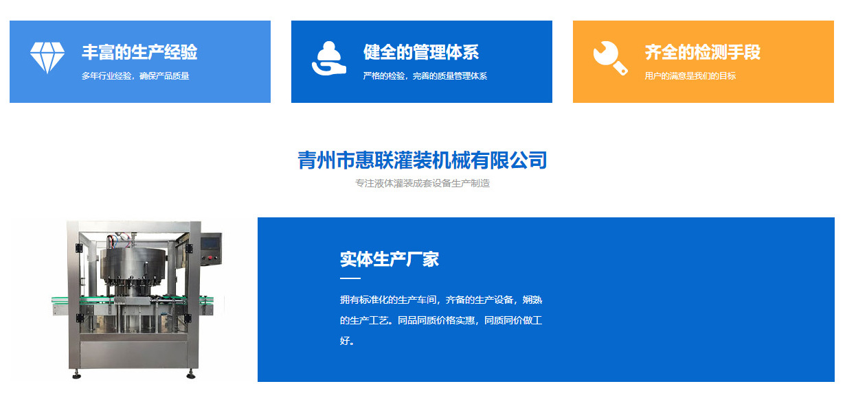 青州市惠聯(lián)灌裝機械有限公司是一家集生產(chǎn)研發(fā)、銷售、服務(wù)于一體的液體灌裝成套設(shè)備生產(chǎn)企業(yè),可根據(jù)廠家要求設(shè)計合理液體灌裝生產(chǎn)線,為用戶提供技術(shù)咨詢、設(shè)計工藝、場區(qū)平面布置、工藝改造、設(shè)備安裝調(diào)試等完善服務(wù)。 公司生產(chǎn)制造各種類型液體灌裝機、過濾機,水處理設(shè)備及液體灌裝成套設(shè)備。主要產(chǎn)品有:白酒、葡萄酒、黃酒等酒水灌裝機、食用油、機油、潤滑油等油類灌裝機、醬油醋、老抽、生抽等調(diào)味品灌裝機、防凍液、玻璃水灌裝機、酒精、84消毒液灌裝機、車用尿素灌裝機、口服液灌裝機、洗滌劑灌裝機等多種液體、膏體灌裝設(shè)備,全自動/半自動灌裝機型號多,規(guī)格全,洗瓶機、瓶子封口機、打塞機、熱縮機、瓶子烘干機、貼標(biāo)機、噴碼機、輸送線、裝箱機、水處理設(shè)備等全套生產(chǎn)線相關(guān)配套設(shè)備齊全,自產(chǎn)自銷,一站式購齊,售后無憂。